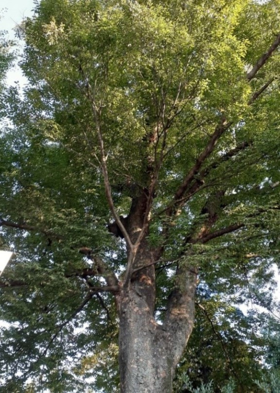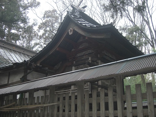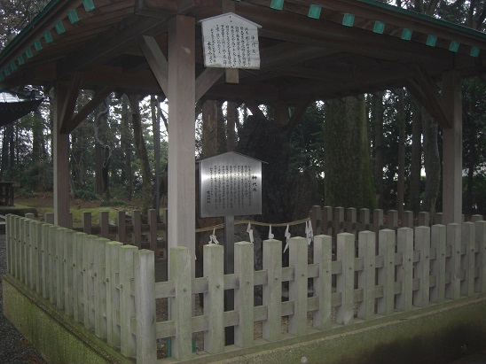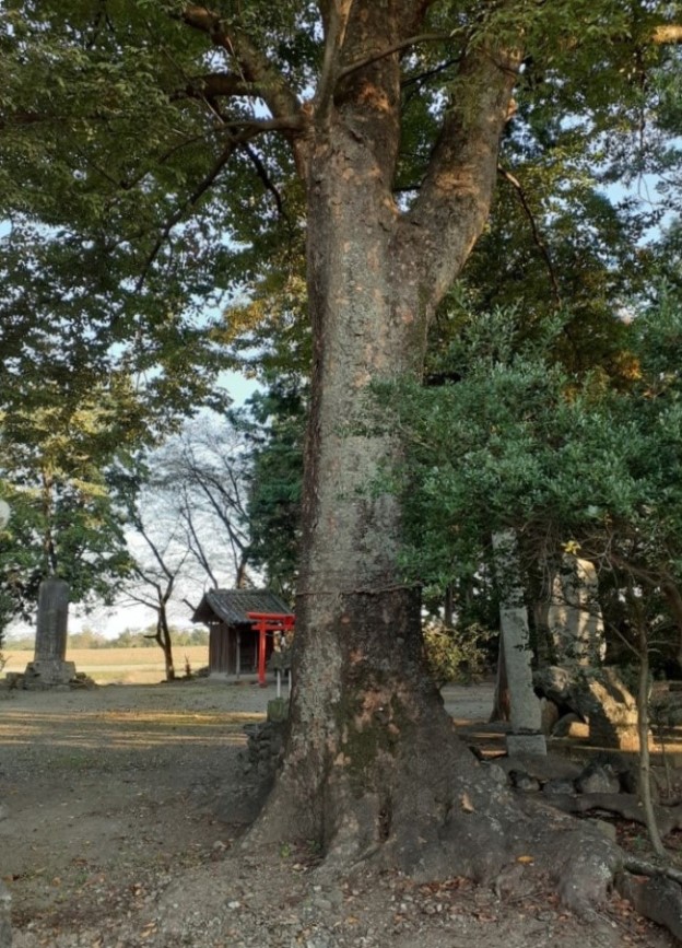 鳥居の先で右側に聳え立つご神木(写真左・右)
