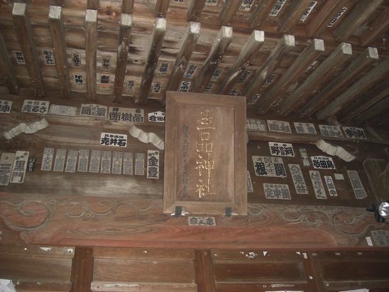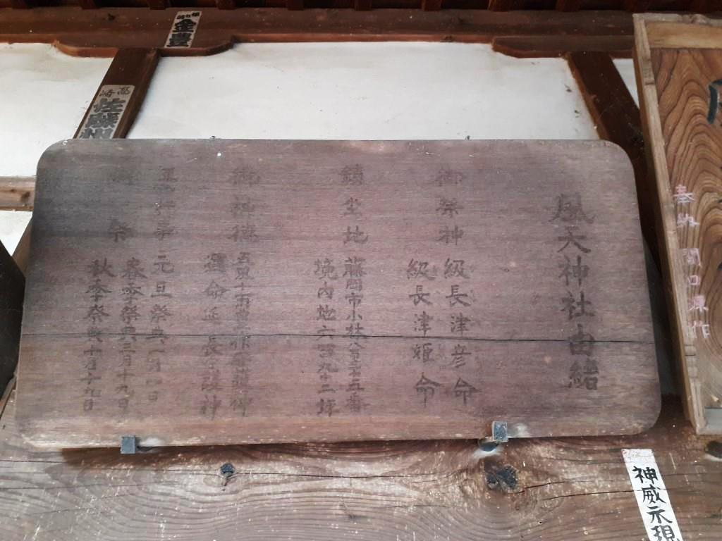 拝殿に掲げてある扁額 扁額の左側にある由緒額