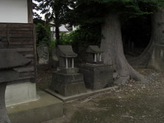 社殿の左側にある石碑、石祠等 社殿の右側には稲荷大神が鎮座。