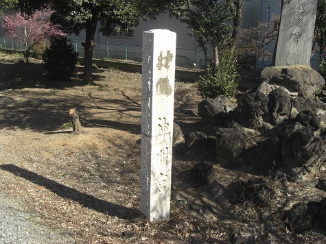 小林風天神社の社号標柱 鳥居は社号標柱の先にある。