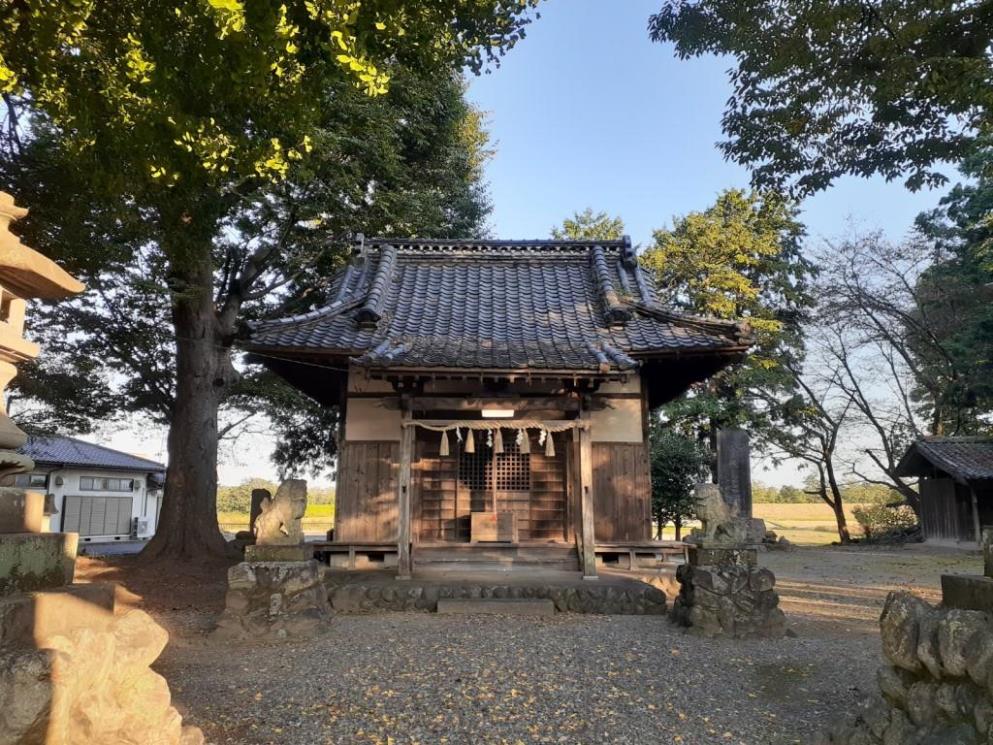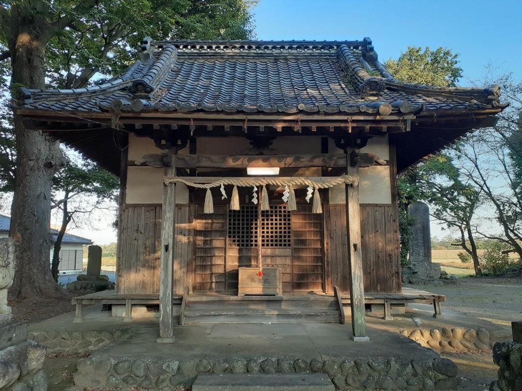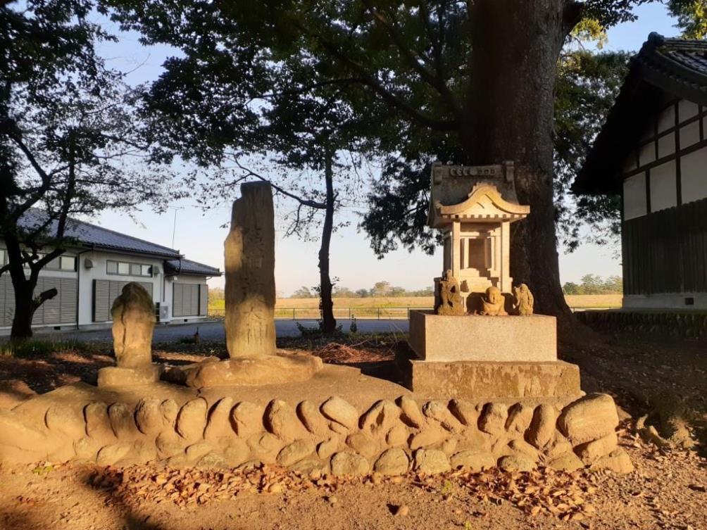 旧上野国緑野(みどの)郡小林村。すぐ東側には田んぼや畑が広がり、更に奥には神流川の土手が見える。「風天神社」という神社名から当初「風からの災害を防ぐためから、冬は上州の空っ風赤城おろしから作物を守る」意味と取られがちであるが、「風による疫病を防ぐ」更には「神流川の水害から人々や作物を守る」という広義な意味も含まれると筆者は解釈した。