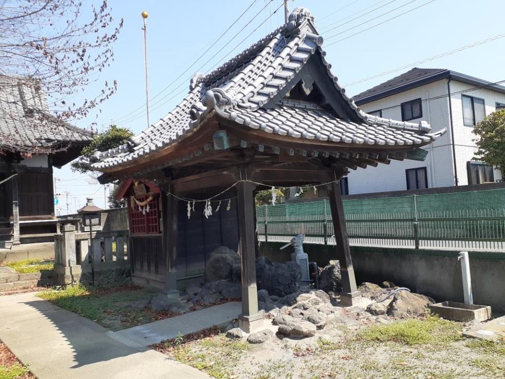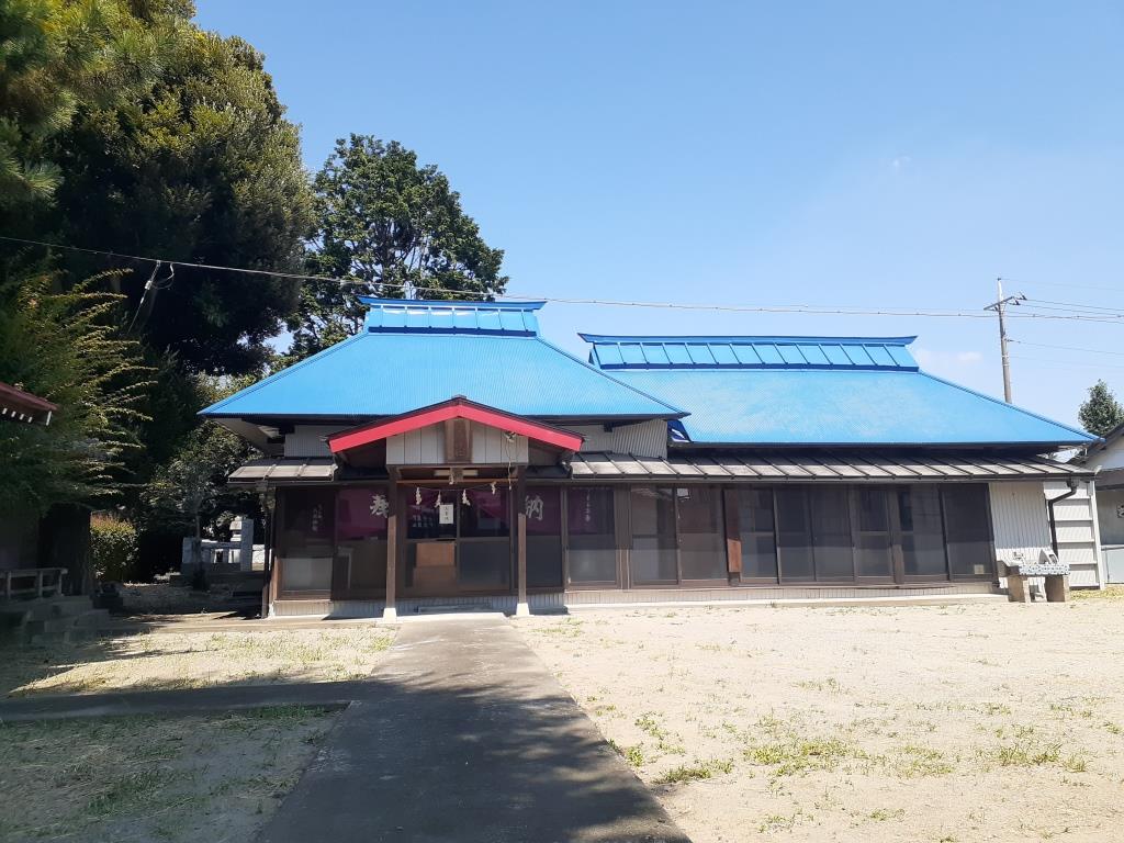 拝殿は正面三間、側面二間の入母屋造の建物で、天井画は鈴木不求・春山・松山の三代にわたる伊勢崎藩絵師が描く。