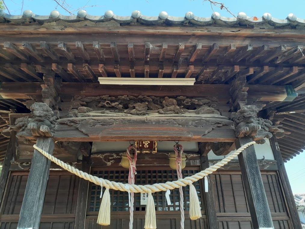 本殿は正面九尺の一間社流造で、建築は棟札から享保十年(1725)まで遡り、虹梁の絵様や蟇股の細部意匠はさらに古式を示し、拝殿にある延宝七年(1679)の扁額まで遡る可能性がある。