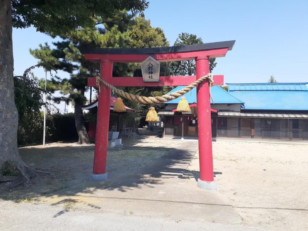 中町雷電神社から群馬県道142号綿貫篠塚線を北西方向に800m程進み、利根川に架かる五料橋の手前にある「柴町」交差点の手前の路地を右折すると、進行方向正面に柴町八幡神社の鳥居、及び社殿が見えてくる。地図を確認すると、利根川左岸で標高58m程の低地帯にあり、旧日光例幣使街道の柴宿に位置している。社の境内に隣接するようにある「柴町農事組合協同作業所」に駐車可能なスペースがあるので、そこの一角をお借りしてから参拝を行う。