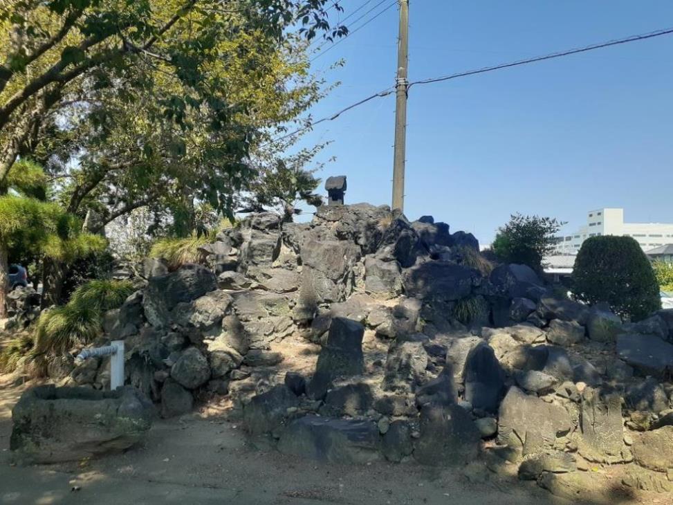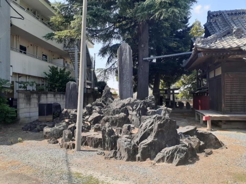 石碑の足元には、天明3年(1783)浅間山噴火の際の溶岩塊がここにも残されている。
