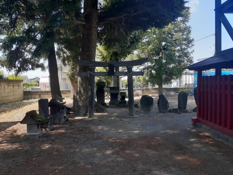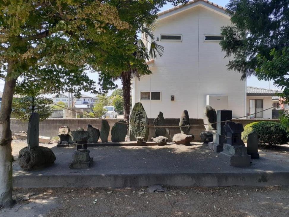 本殿左側奥に祀られている境内社・神明宮 神明宮の東側に祀られている末社・石祠群