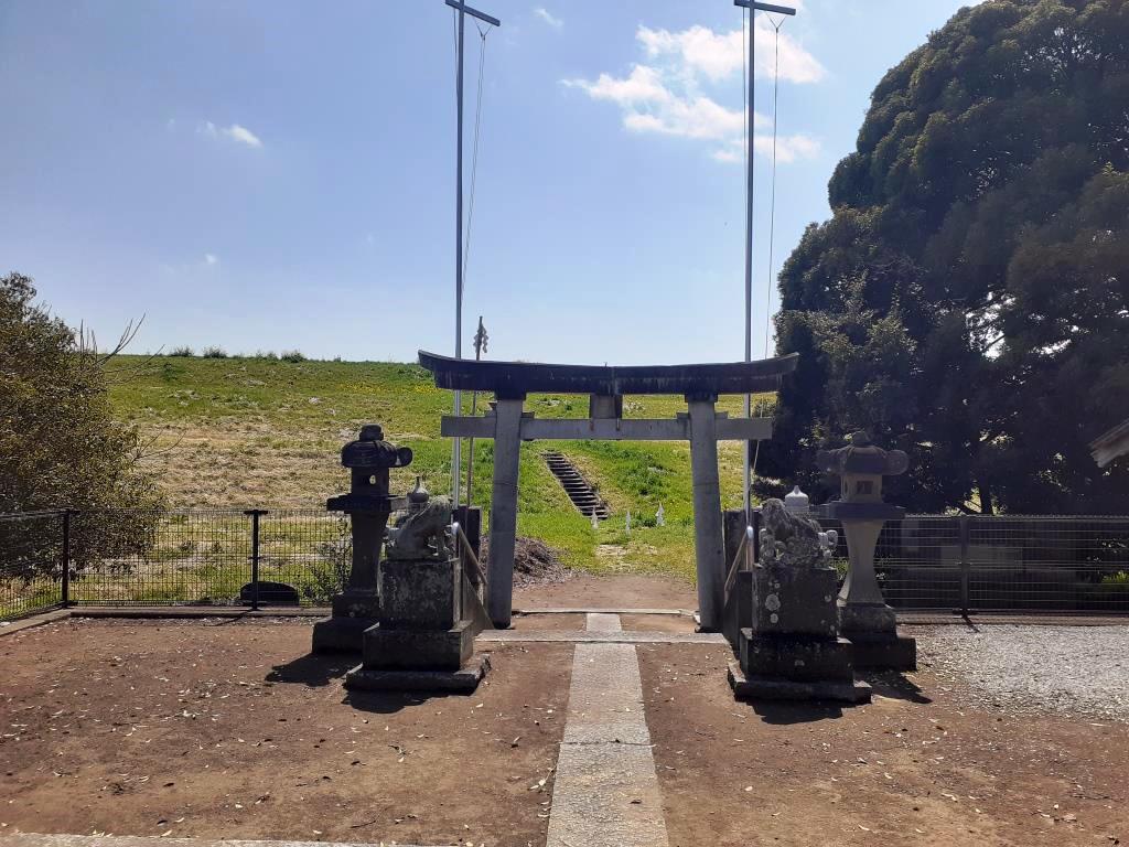 鳥居のすぐ先には利根川の堤防があり、石段がわざわざ堤防上まで伸びている。
