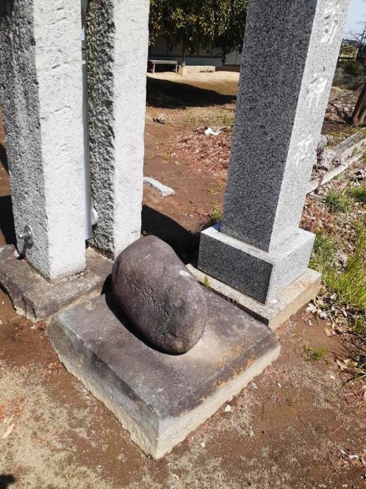 入口の一対の柱にはそれぞれ卵形の自然石を利用した力石がある(写真左・右)