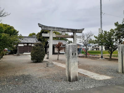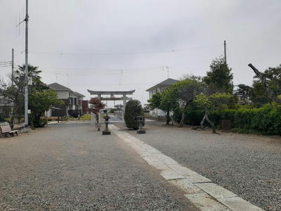 右折後、750m程南下した先の丁字路を左折すると、進行方向右手に下新郷天神社の境内が見えてくる。