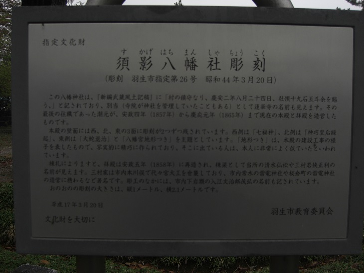 案内板によると、小松神社は、熊野白山合社と小松大明神を合わせて、小松三神社と呼ばれていたそうだ。新編武蔵風土記稿では、「羽生領七十二ヶ村の鎮守となり」と書かれ、この地方では信仰を集めていたらしい。