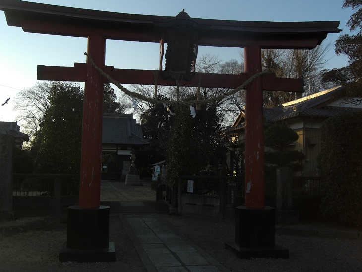 小松三神社は国道125号行田バイパスを東に進み、国道122号と合流する前の小松交差点を左折し、約500m北上すると左側に赤い立派な鳥居が見えてくる。よく見ると東向きの鳥居から真っ直ぐ進む道があり、南側に松林があるところから、この鳥居の前の道は嘗ては社の参道だったのだろう。