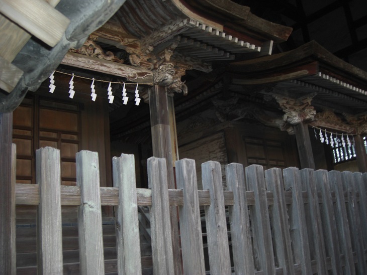 本殿覆屋の中の本殿は、白山神社(左側)、熊野神社(右側)が並んで鎮座