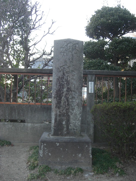 鳥居の先、右側には「郷社 小松神社」の古い社号標があり(写真左)、神社の北側には弁財天が祀られている。(写真右)