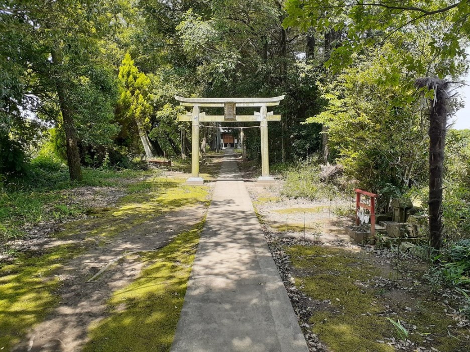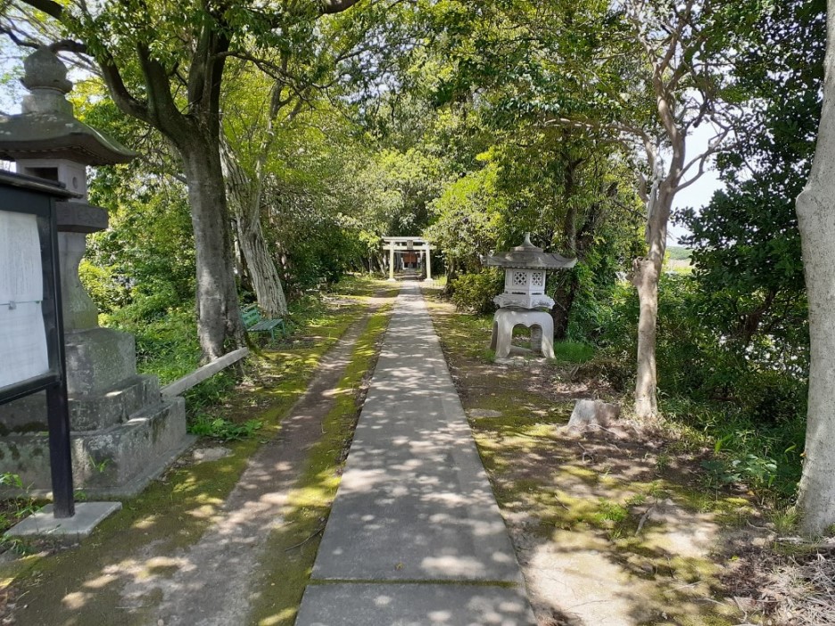 比較的長めの参道の先に二の鳥居が見える。