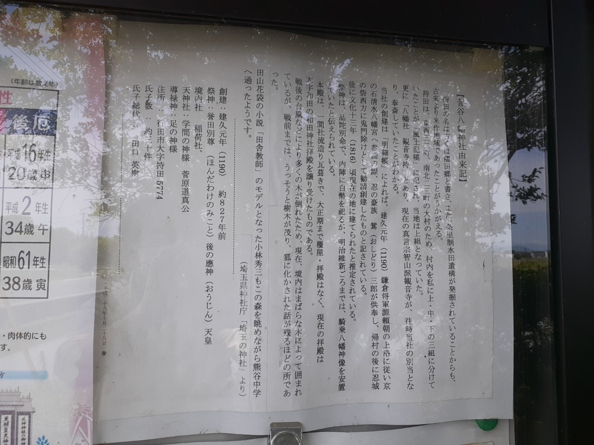 鳥居の先で左側に設置されている提示版内にある「菅谷八幡神社由来記」