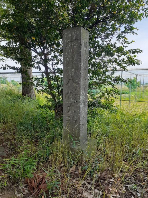 社殿前でどちらも右側には二基の石標柱等があり(写真左・右)左側は八幡神社の社号標柱で、右側は奉納柱、その下部には石祠(?)らしきものもある。