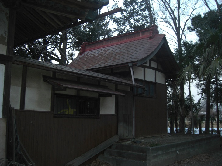 拝殿の左側にある石祠、石碑(写真左)、そして本殿の右側奥にひっそりとあった石祠(同右)