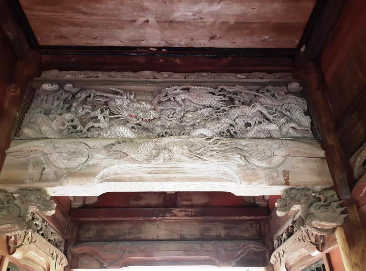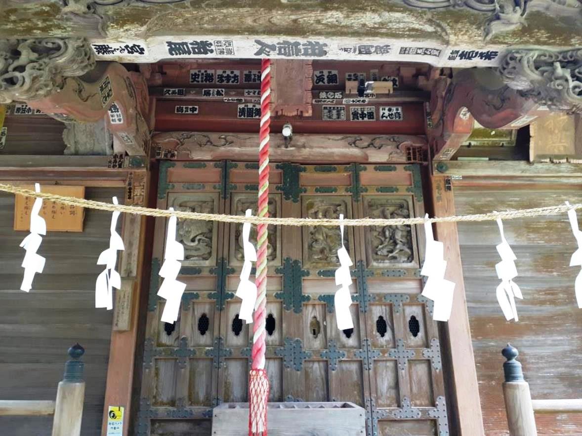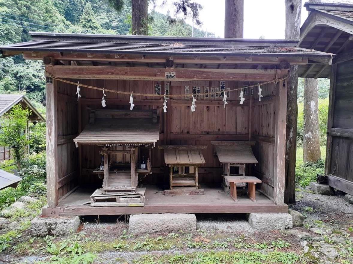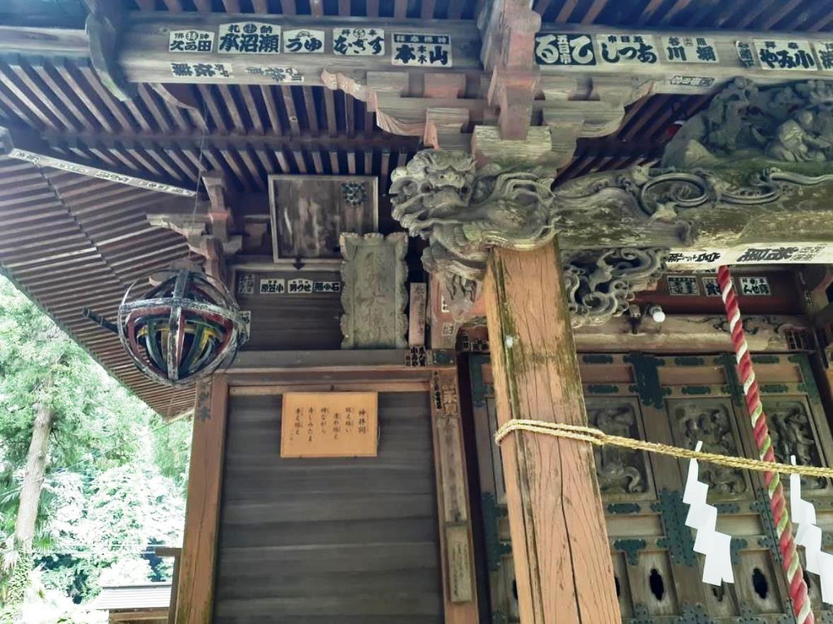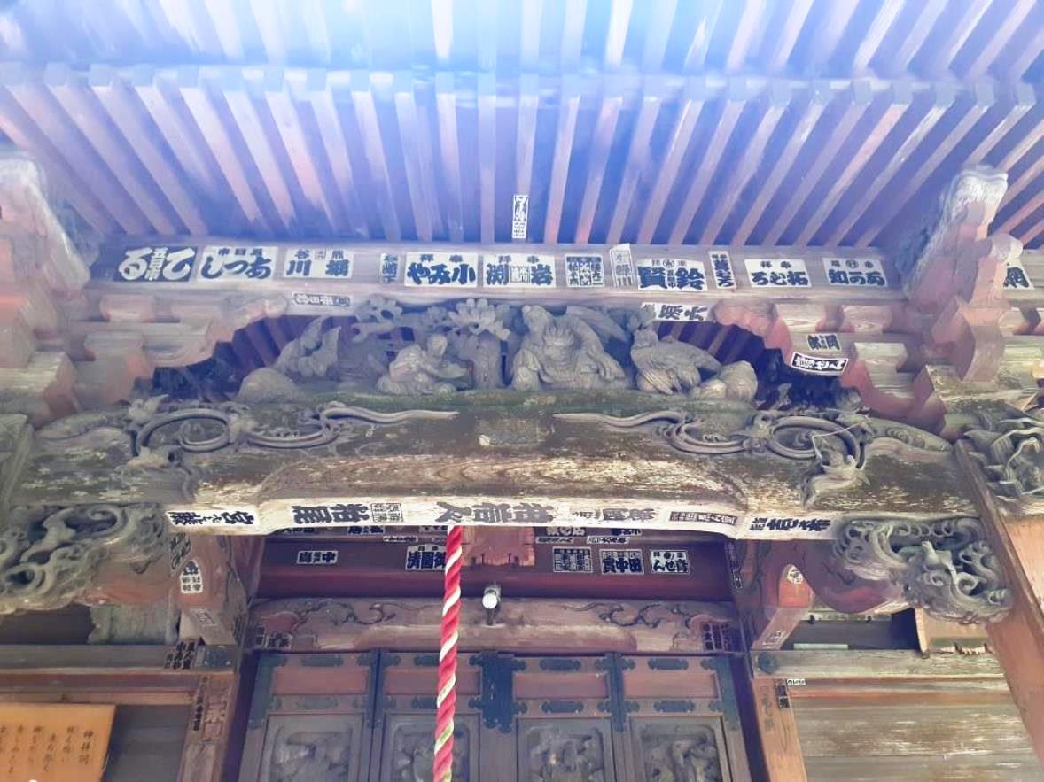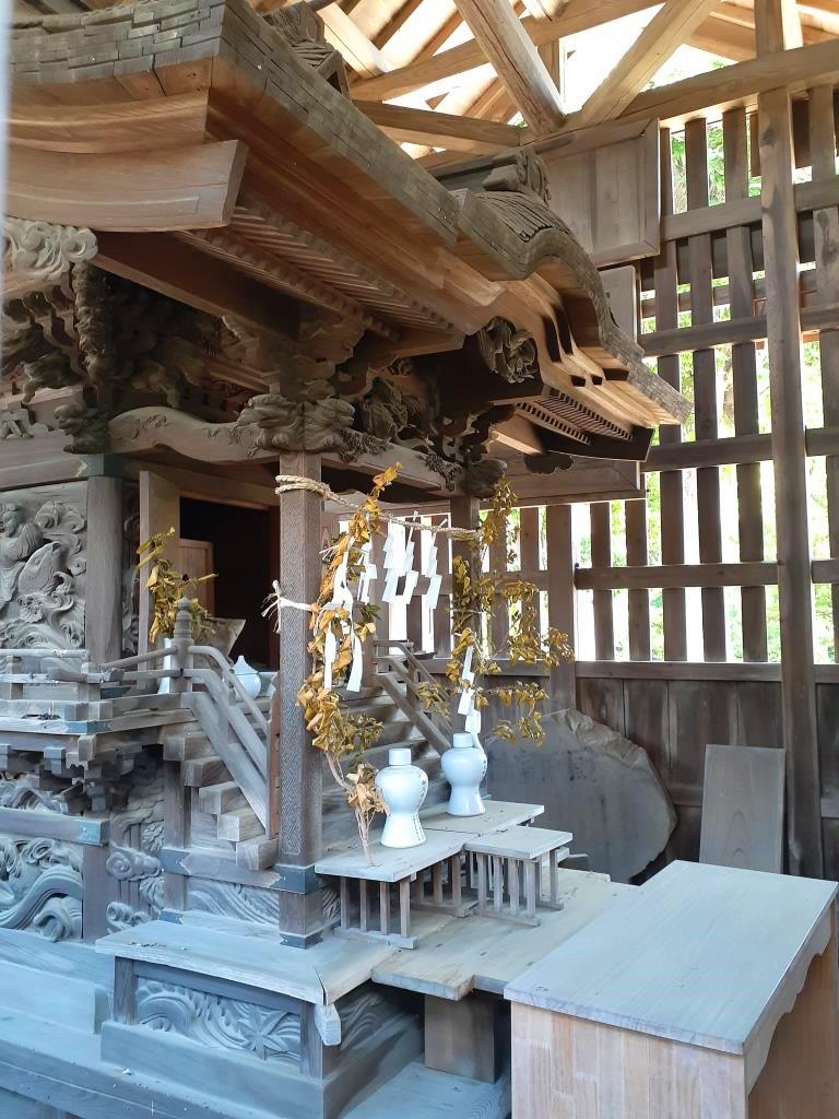 社殿に掲げてある扁額 社殿奥にひっそりと祀られている境内社