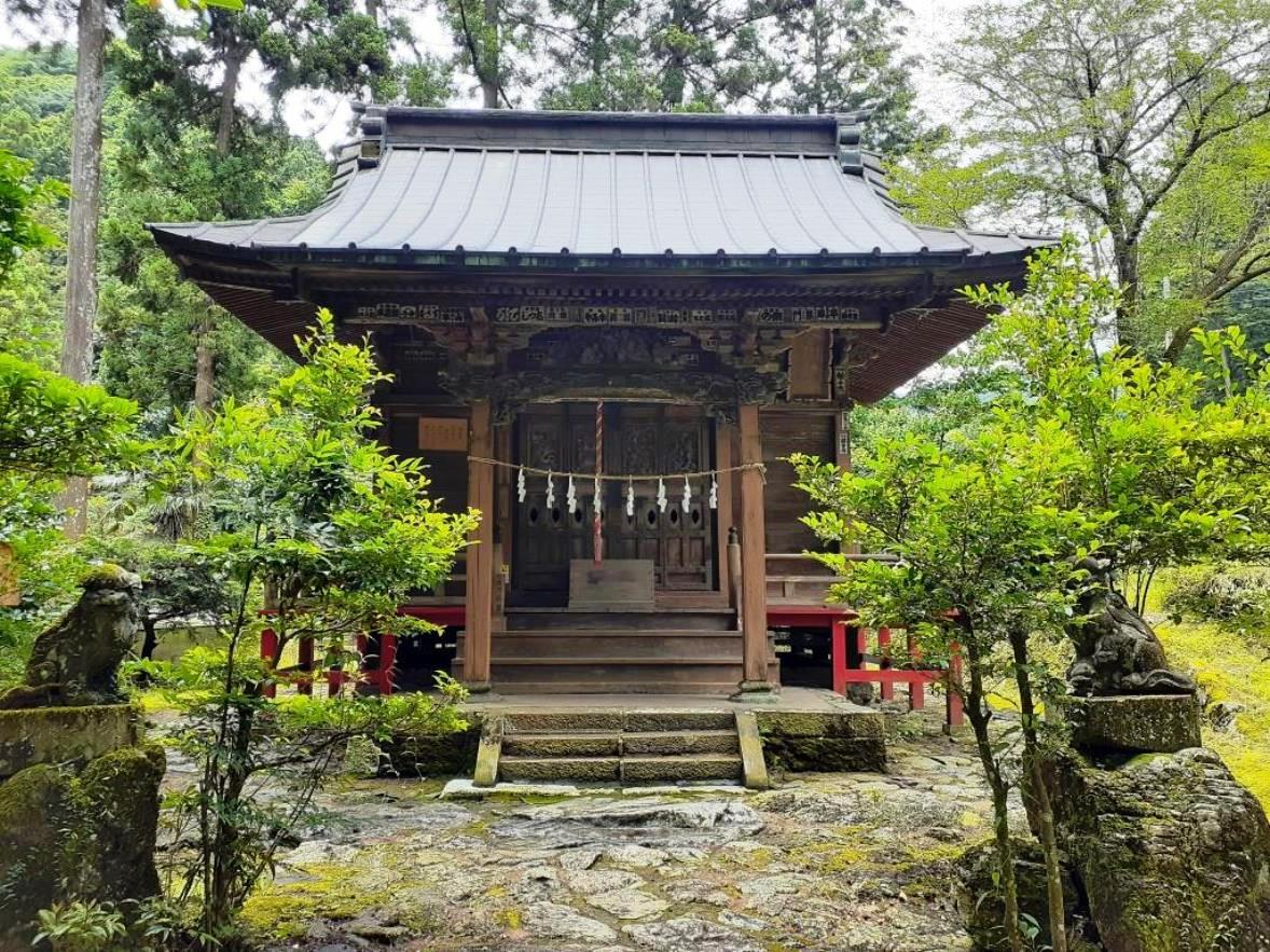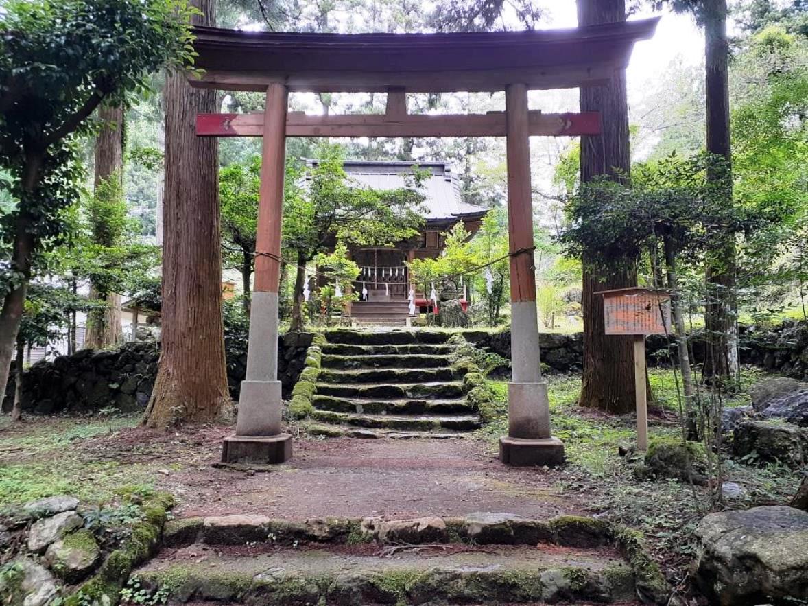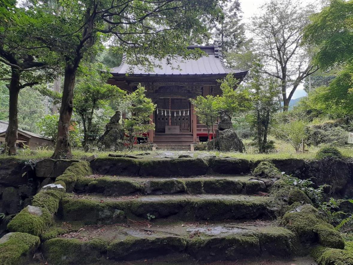 この地は越辺川源流域に位置し、川底が透けて見える程綺麗な越辺川が社の対岸にあり、一とき目を閉じると、川のせせらぎが耳奥に心地よく響く。周囲は山奥独特の深い森林が広がり、深呼吸をすると、体一杯に綺麗な空気が体内の余計な異物等を排除してくれるような心地よい気持ちになる。