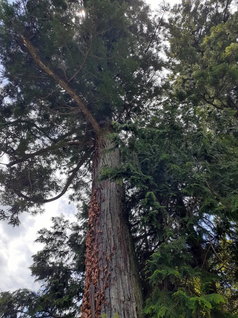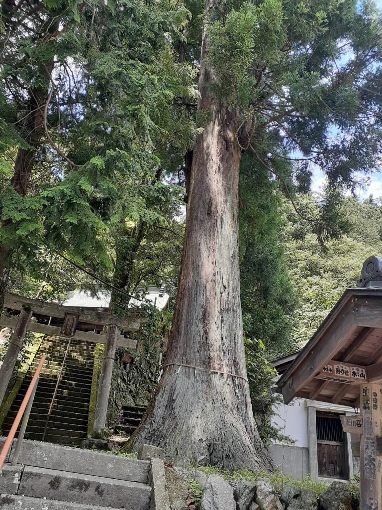 黒山熊野神社正面参道両側に対となり聳え立つ大杉のご神木