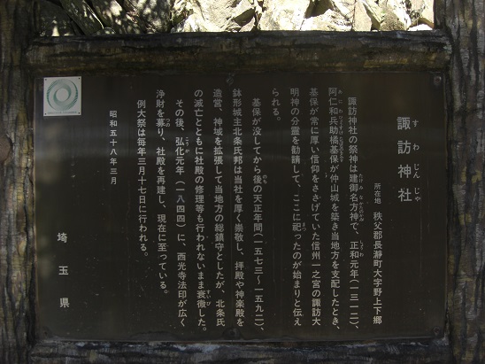 諏訪神社   所在地 秩父郡長瀞町大字野上下郷