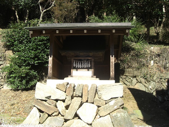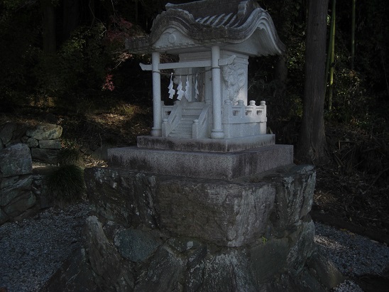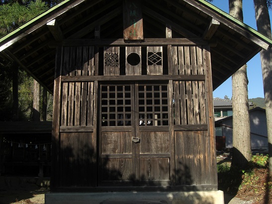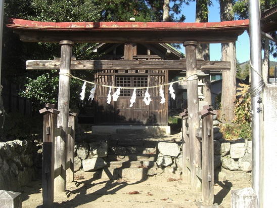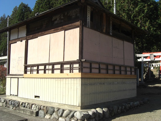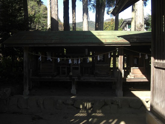 社殿の前方左側にある神楽殿         石上神社と八坂神社の間で奥にある境内社