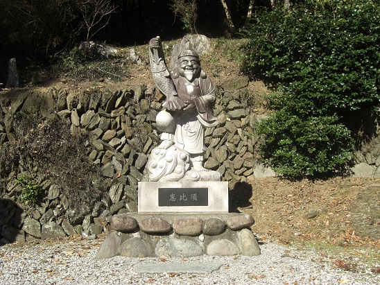 社殿左側に境内社と共にある恵比寿様             恵比寿様と並んである社日
