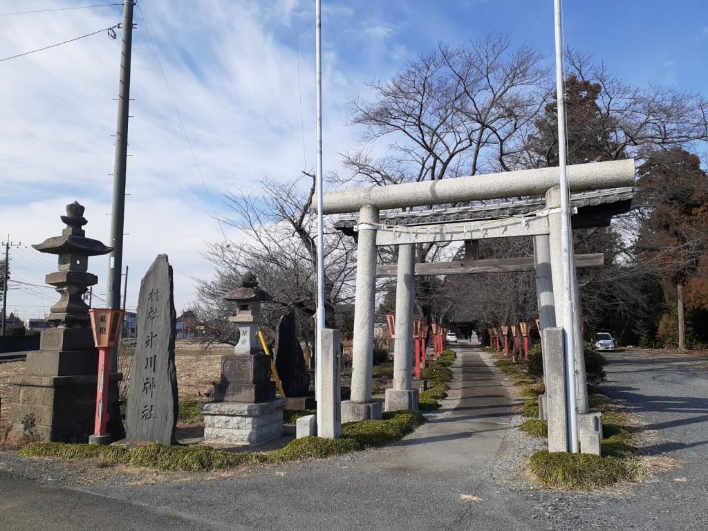 一方、『明細帳』によれば、当社は宝永七年(一七一〇)に再建され、明治六年村社に列せられたことや、同八年一月五日に焼失したが同年五月二日に再建されたこと、明治四十年に西中曾根の村社氷川社など六社を合祀したことなどがわかる。その後は、昭和二十八年に拝殿と本殿覆屋が新築された。更に昭和四十一年には、台風で参道の両側に並び立っていた杉の大木のほとんどが倒れてしまったが、後に植樹が進められ、現在は立派な杜となっている。