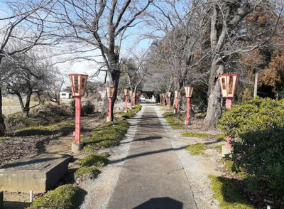 比較的長い参道を進む。両側には朱色の灯篭が並び、奉納者名の記載されている(写真左・右)。神社の案内板によると、かつては参道の両側は杉の大木が並び立っていたようだが、昭和41年(1966)の台風でほとんどが倒れてしまったという。代わりに灯篭を並べたとの事だ。