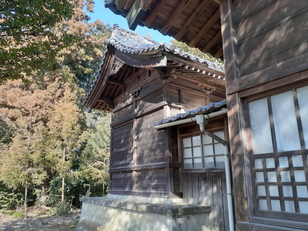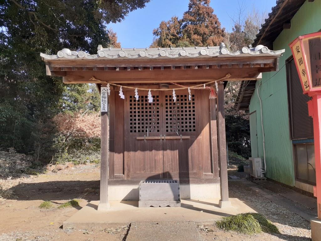 社殿右側に鎮座する境内社・日枝神社(山王様) 社殿左側に鎮座する境内社・八雲神社(天王様)