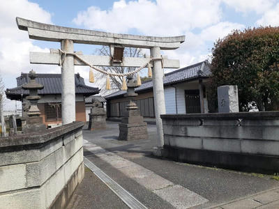 旧川里村境地域に鎮座する社である。広田鷺栖神社から埼玉県道313号北根菖蒲線を東行し、1㎞程先にある丁字路を左折する。通称「川里中央通り」と呼ばれるこの道の東側には鴻巣市の花と音楽の館「花久の里」というNPO法人が運営している施設があり、花・物販の事業、食の事業、音楽・芸術の事業や年間のイベントを実施しており、季節別に彩られる庭園は自由に入ることができるなかなか洒落た場所だ。