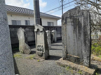 鳥居の右側に祀られている愛宕社・弁天社 鳥居の左側には、伊勢参宮記念碑や