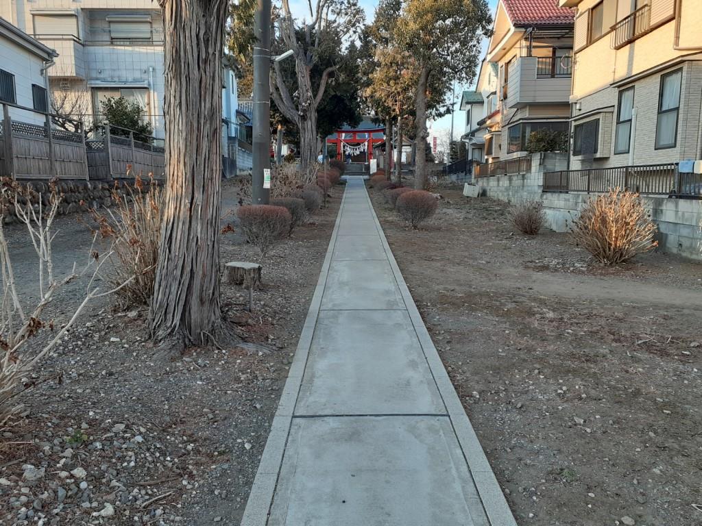 驚く程、住宅街にあり、参道の両脇には家やマンションが立ち並んでいて、その中を抜けるように境内が広がり、その先に拝殿、本殿等が鎮座している。