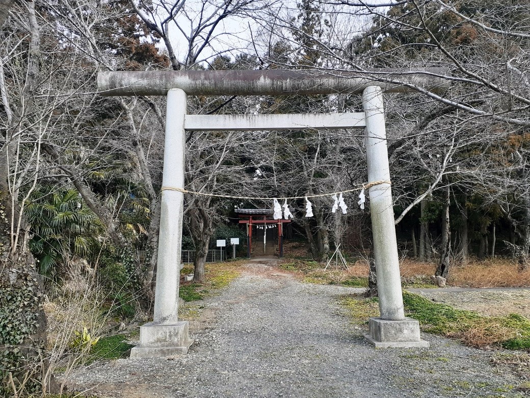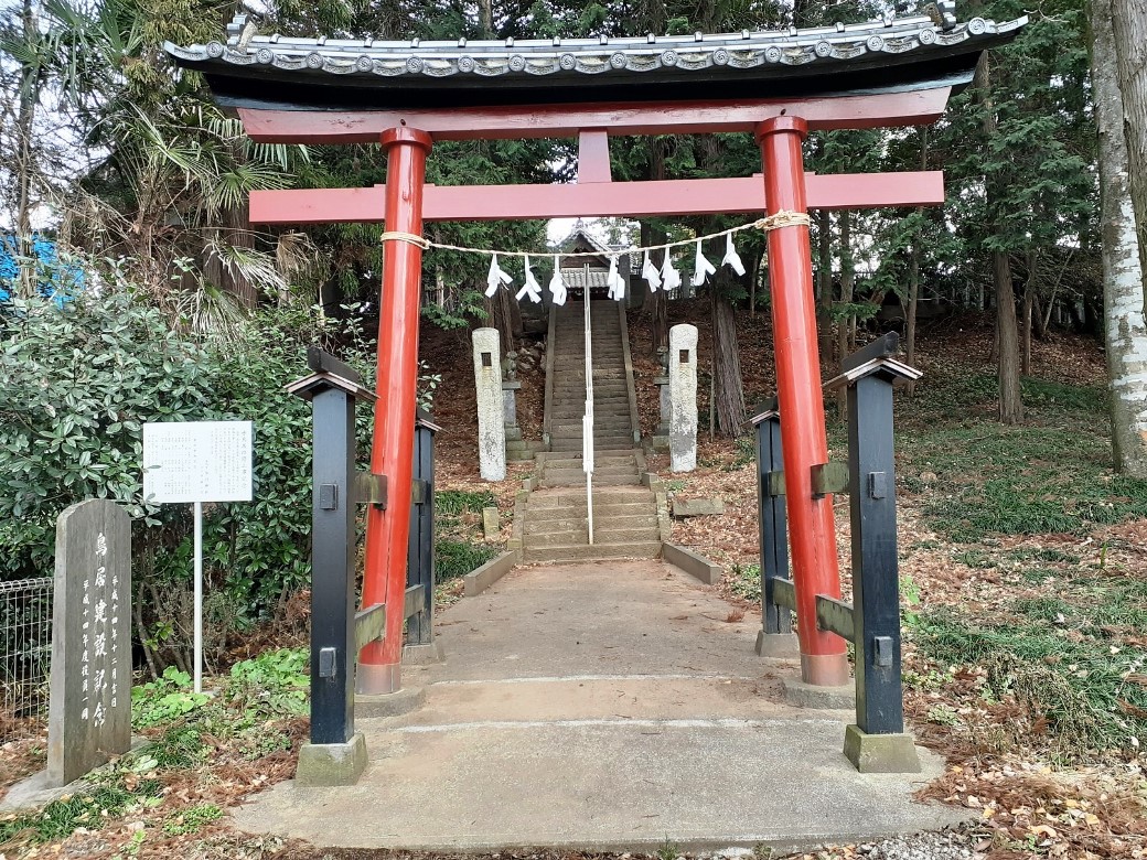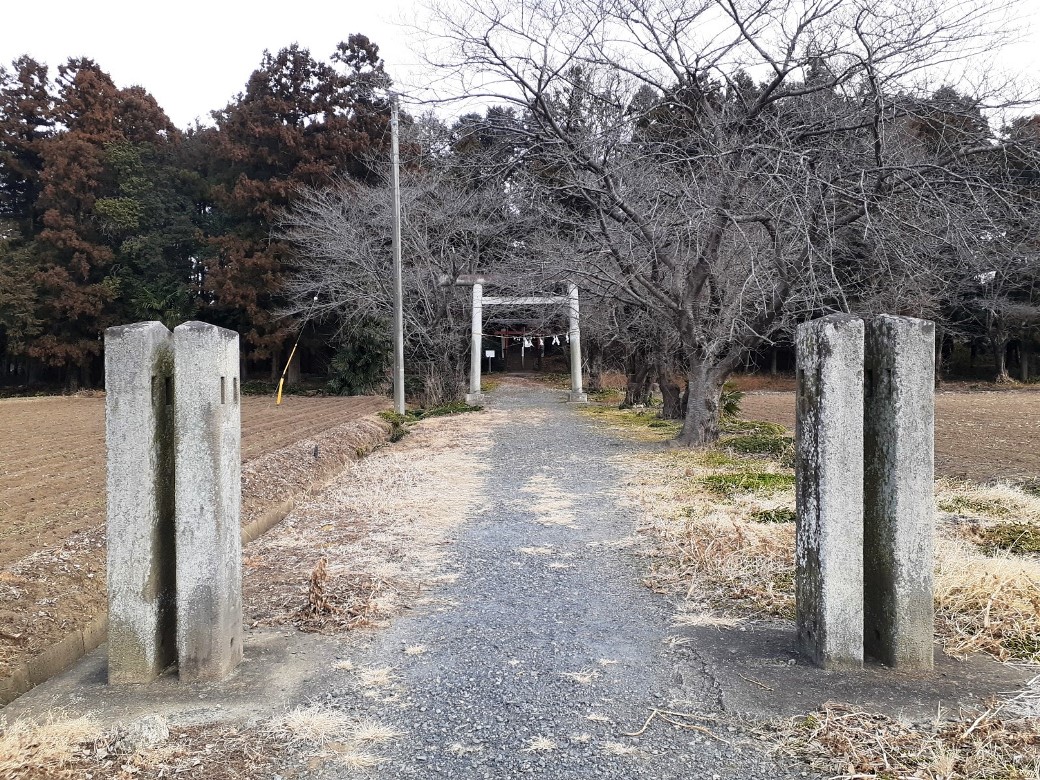 原馬室野宮神社から西方向に進路を取り、「なのはな通り」に合流する。「なのはな通り」を北上し、「鴻巣市 中学校給食センター」の十字路を左折し、細い道路を荒川河川敷沿いまで進み、そこから「御成橋」方向に350m程北上すると社の鳥居が見えてくる。周囲は草地と畑。実は、ポビー祭りやコスモス祭り会場でもあるので、細いながらも意外と舗装路もあるので車でも行ける。