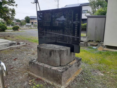 「関新田稲荷神社 由緒書」の案内板 「関新田稲荷神社改築記念碑」