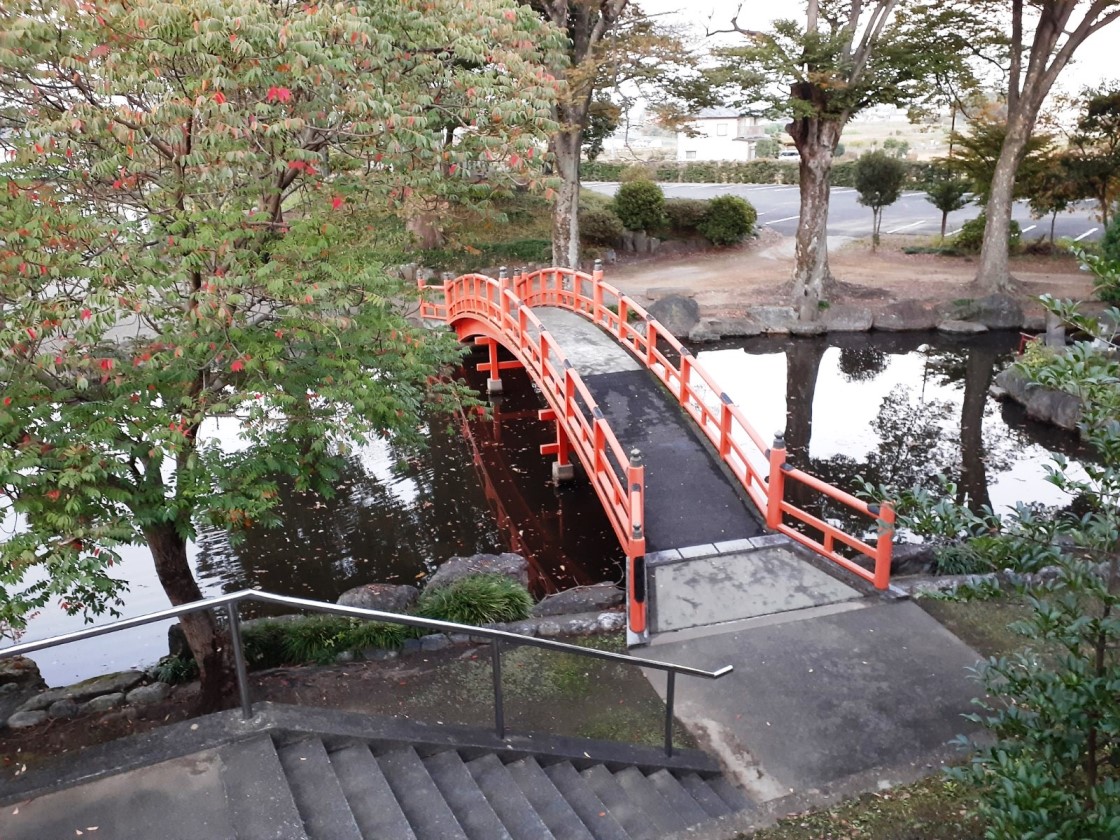 社殿の左奥に水天宮を祀る池があり、朱塗りの太鼓橋が景観的に美しい。