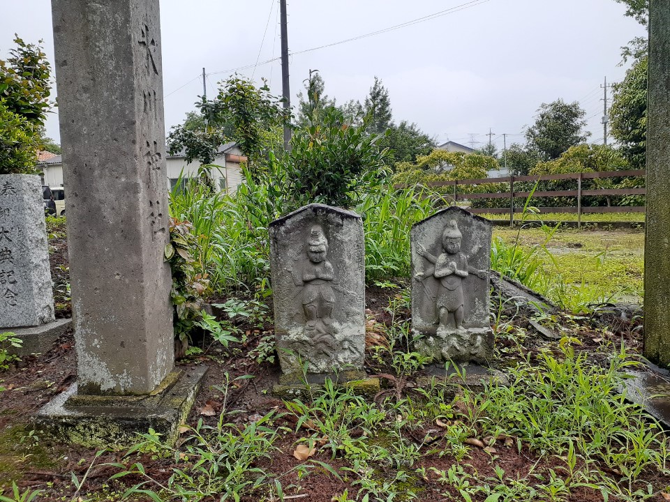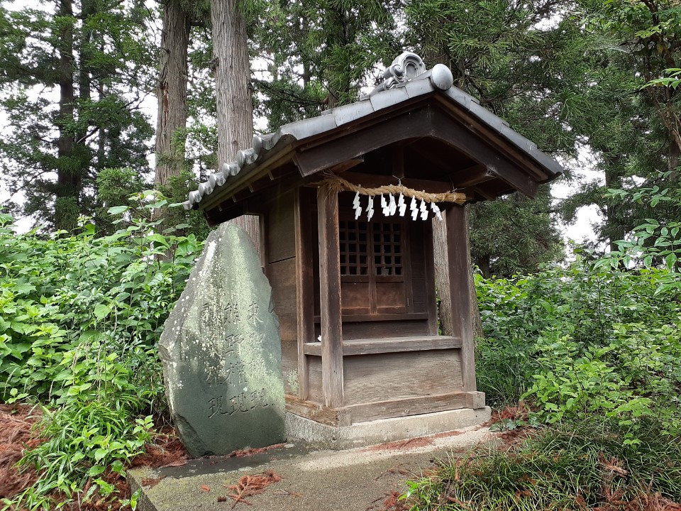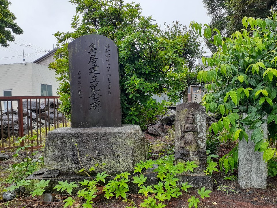 「武州比企郡川嶋土袋庄中山村江口村六兵衛、願主隆貞」の文字と共に、「延暦三年甲子(七八四)九月勧請 二十七年破損造立 自享禄元年(一五二八)宝永七年迄八十四年 従延暦三年宝永七年迄九百廿七年」と、由緒が記されている。