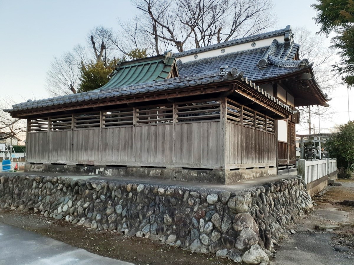 一面田畑に囲まれるように中に社叢林が鎮守の杜一帯に生い茂り、いかにも「村の鎮守様」としての佇まいを今でも色よく残している。