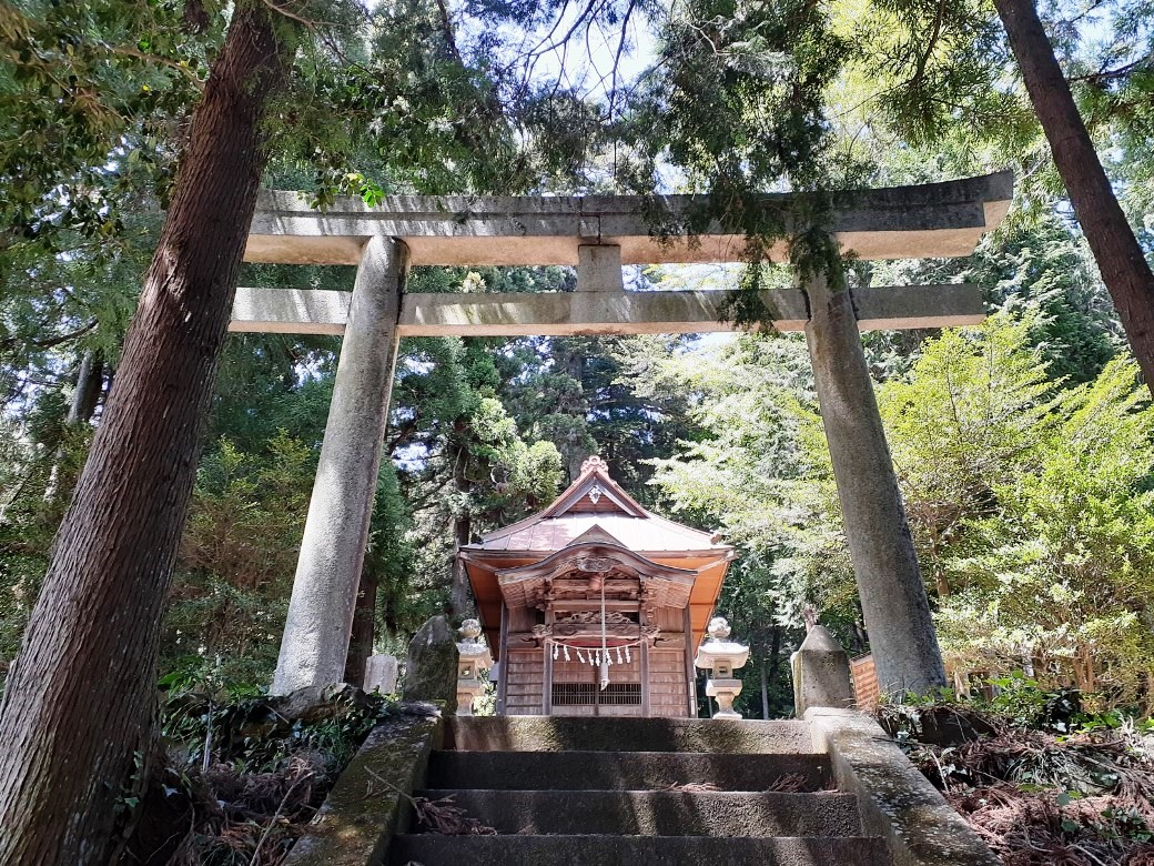 実はこの社から暫く進むと民家が数件あるが、行き止まりとなっている。周囲には鬱蒼とした森が続き、当然ながら参拝客もいない。当日の天候は雨交じりの曇りとも合わさって、寂しさも漂い、ひっそりと佇む社という第一印象。