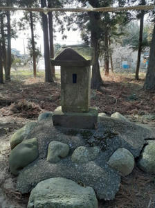 境内には石祠(写真左)あり。詳細不明。また社殿奥には「愛宕大権現」の石碑もあり(同右)