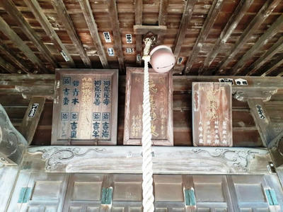 参道の先に拝殿が鎮座する。 拝殿の手前に設置されている