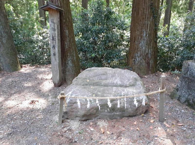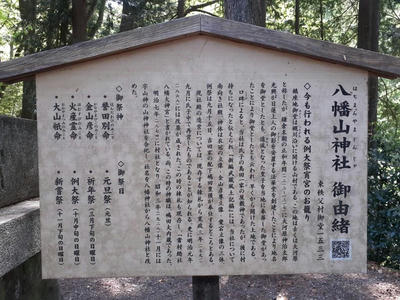 延命長寿石のその横には「この石を良く撫でさすり、自分の体を更によくさすり、八幡様に健康と長寿をお祈りしましょう。」と書いてある木製の碑がある。