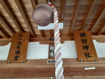 参道の先に拝殿が鎮座する。 拝殿の手前に設置されている