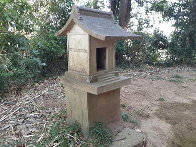 境内には石祠(写真左)あり。詳細不明。また社殿奥には「愛宕大権現」の石碑もあり(同右)
