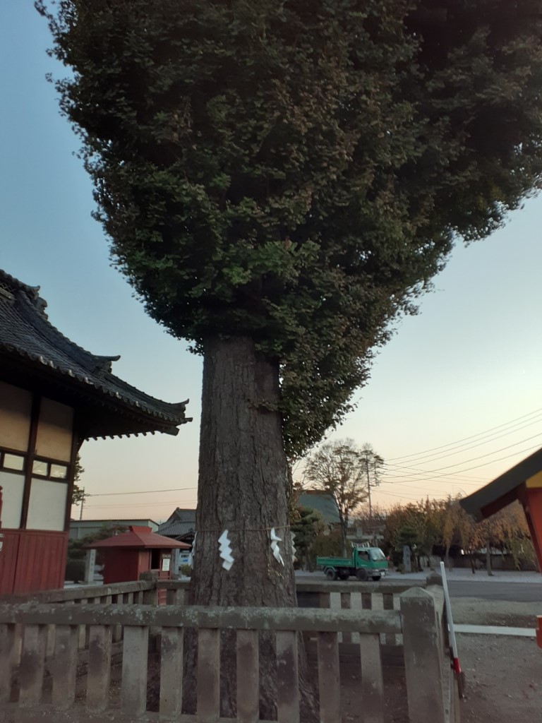 この社から北東方向1.3㎞先で樋口駅の北側に鎮座する野上下郷瀧野神社が鎮座しているが、江戸時代中期「寛保二年水害」という1742年(寛保2年)の旧暦7月から8月にかけて日本本州中央部を襲った大水害があった。この水害は江戸時代を通じて埼玉県を襲った数々の水害の中でも、最も甚だしかったらしく、当時の記録によれば旧暦7月27日から4日間豪雨が続き、8月1日の水位が18mも上昇してここまで達し、付近が水没したとの事であるが、同じ地域で比較的近くに互いに鎮座する社において、過去の教訓が今も受け継がれていることではなかろうか。