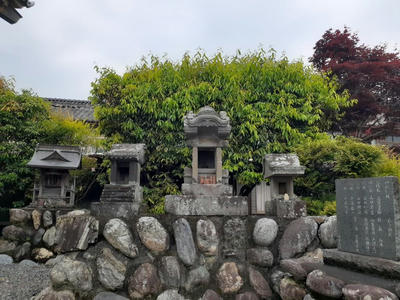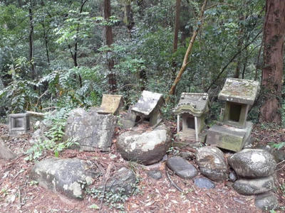 社殿の右側奥に鎮座する境内社・稲荷神社 稲荷神社の近隣に並んで祀られている石祠群