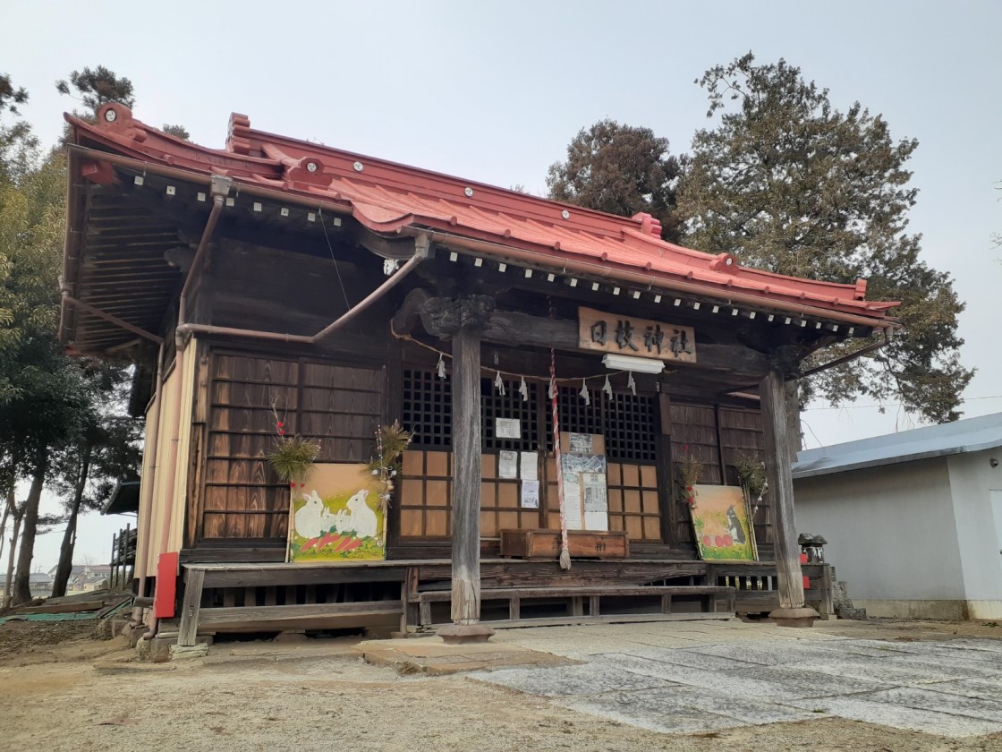 毎年のことなのか、兎年ということで拝殿の正面の壁には兎の絵が飾られている。鎮守社としての地域の方々との強い繋がりを感じると共に、印刷物でないほのかな人間の温かみを感じる絵柄だ。
