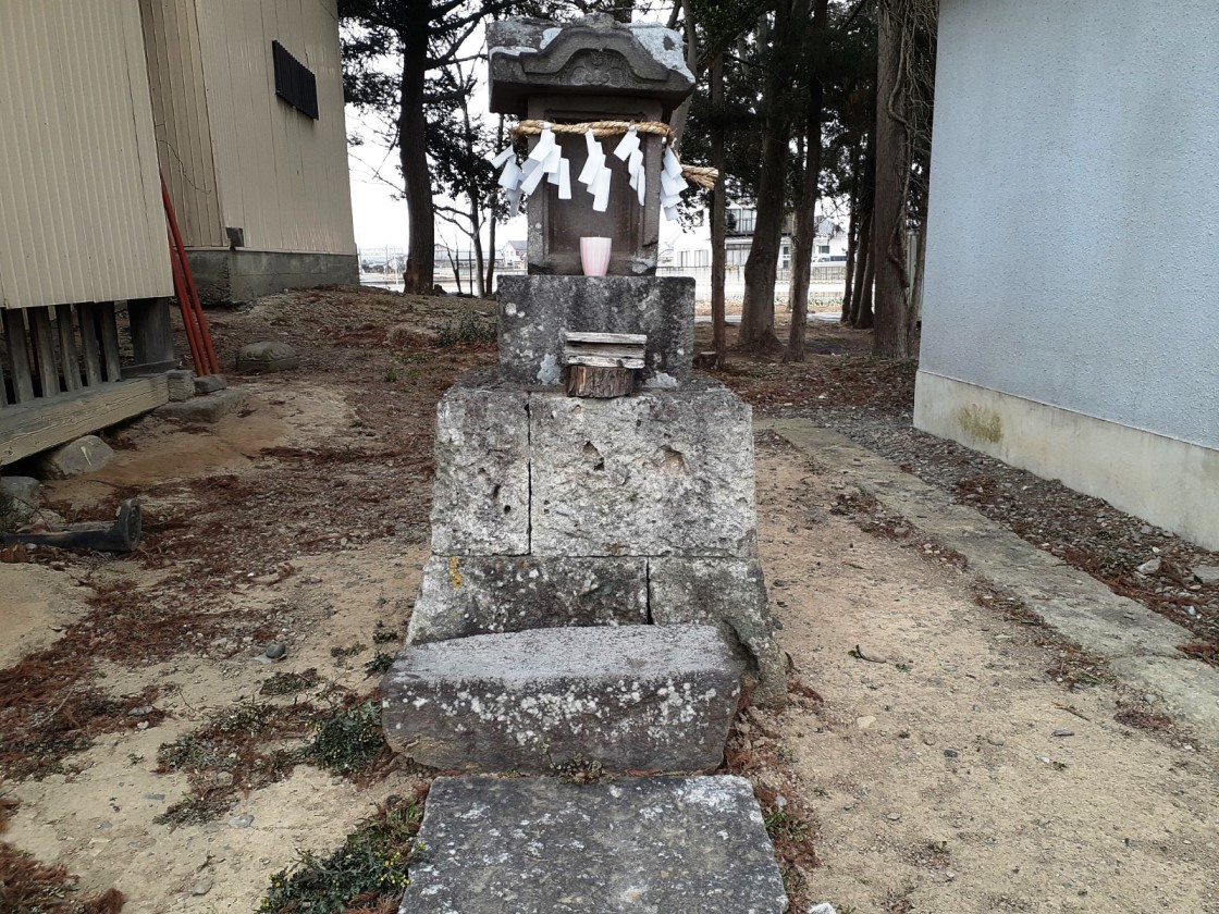 境内から拝殿までの間に2段の石段がある。思うに鎮座している場所は大間地域でもやや高台を選んで建立したのであろう。
