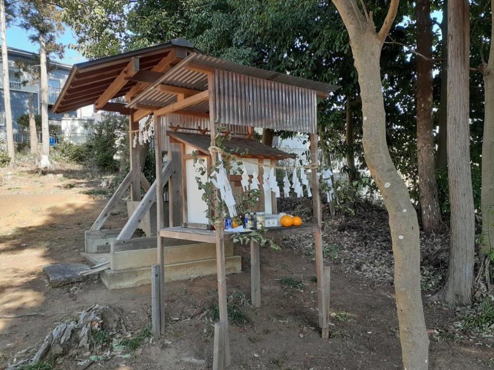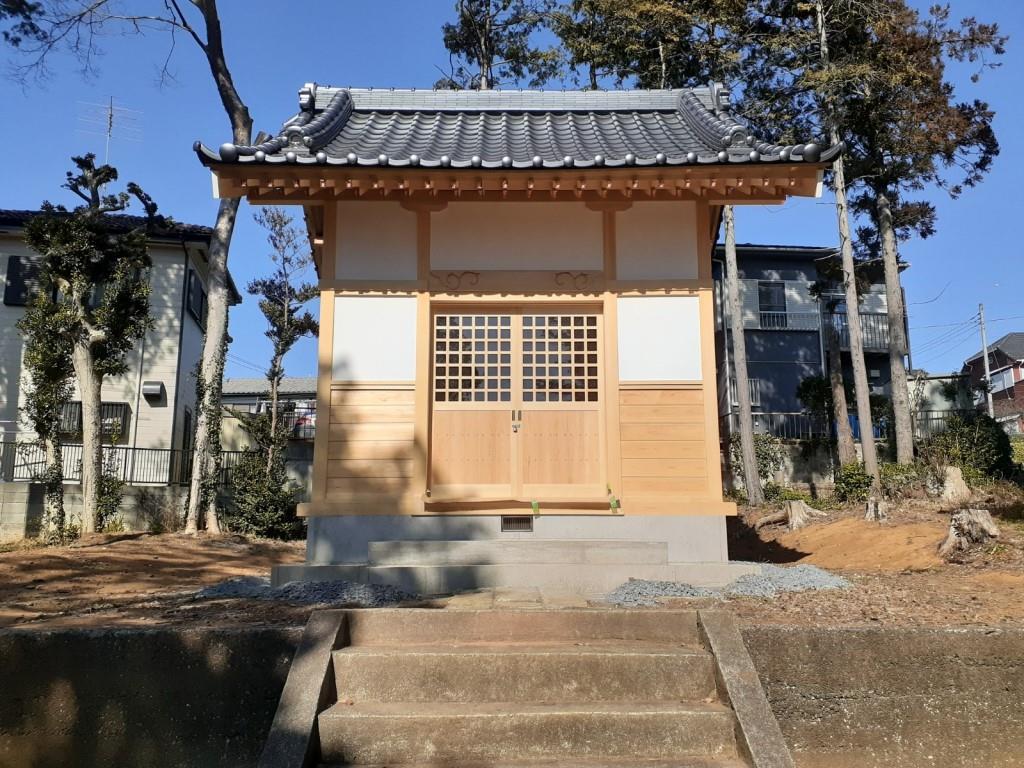 しかし、昭和四十年代に入ると、関越自動車道久喜インター建設のための採土がこの山の周囲で行われたことから、参道の各所に崩れが生じ、参詣に支障を来すようになった。このために社殿等の移転を余儀なくされ、山麓に新たな社地を選定し、昭和四十七年四月十五日に遷座祭を執り行った。山頂にあった社殿をはじめ石造物などもすべて新たな社地にそのまま移し、更に参道の一一一段の石段は、神徳の更なる興隆を願って社殿の基礎に使用した。