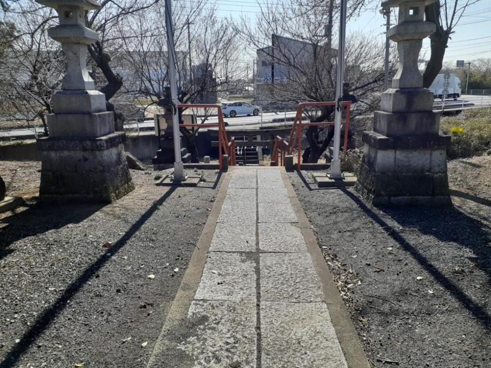 社は道路に面しているが、道路から奥に入った場所に鎮座しており、鳥居手前左側には集会所もあって、そこには駐車スペースも若干確保されていた。